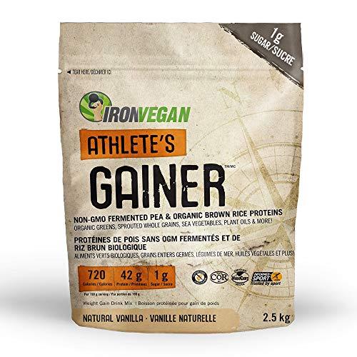 Iron Vegan Athlete's Gainer was designed with the most ingredient conscious athlete in mind. Each serving provides 42 grams of non-GMO plant based protein derived primarilhy from fermeted pea protein isolate and organic sprouted brown rice protein concentrate. Iron Vegan Athlete's Gainer is an excellent source of dietary protein which helps to build strong muscles and repair body tissues. Bur Iron Vegan Athlete's Gainer offers more than just protein. Each serving provides over 700 calories, 13 grams of fibre and only 1 g of sugar. It also has a 2.85:1 carbohydrate to protein ratio and contains a long list of plant-based ingredients that includes organic greens, fruit concentrates, organic sea vegetables, plant oilsand sprouted whole grains. Best of all, Iron Vegan Athlete's Gainer delivers all of the above without compromise. Like all Iron Vegan products, it maintains its commitment to non-GMO protreins and to all natural formulas that are certified vegan, kosher and gluten free.