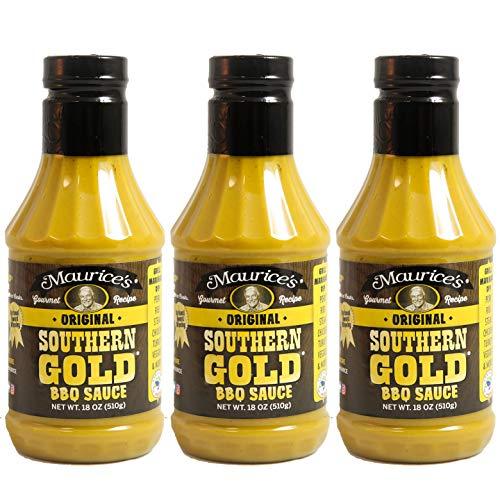 An exclusive 3-pack or Maurice's Original Southern Gold recipe, an All Natural Gourmet Blend BBQ Sauce that comes from an exclusive heirloom recipe hundreds of years old and includes only the highest quality ingredients. This "Secret, Golden" recipe has No Fat, No Cholesterol and No Preservatives.