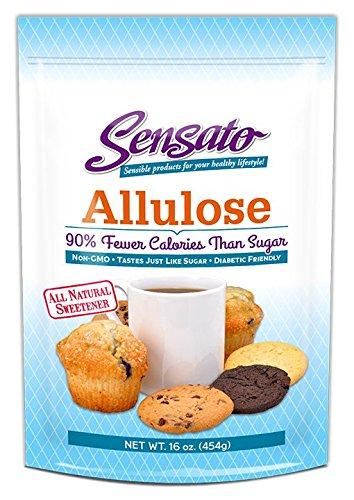 Sensato Allulose is a low calorie sugar that occurs naturally in small quantities in foods like figs, raisins and maple syrup. It is a monosaccharide, or simple sugar, that is absorbed by the body, but not metabolized so it is nearly calorie-free ... giving you all of the taste but none of the "waist". Allulose is not recognized by the body as a carbohydrate. Allulose measures cup for cup, just like sugar, and can be used in all your low carb baking. Allulose has the same taste and texture as sugar without all of the calories.