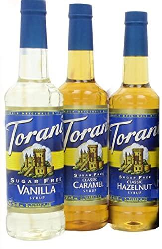Torani Torani Coffee Sugar Free Syrup Variety Pack, 25.4 Ounce (Pack of 3) one each of Sugar free: Vanilla, Caramel and Hazelnut